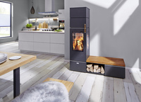 Einen einmaligen Blick bietet die praktische Seitenbank, die optional montiert werden kann. Diese schließt direkt an den Ofen an und ist mit einer massiven Sitzfläche aus Holz und der sanften Wärme besonders einladend. Zudem können in dem integrierten Fach die Holzscheite sogar besonders dekorativ gelagert werden. Damit ist das Brennmaterial zum Entfachen des Feuers stets nur einen Handgriff entfernt.