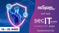Paderborn, 18. Februar 2025 – NoSpamProxy, der Hersteller der gleichnamigen Produkt-Suite für E-Mail-Sicherheit „Made in Germany“, ist als Aussteller und mit einem Vortrag auf der secIT by heise vertreten. Auf der renommierten Kongressmesse für IT-Sicherheitsbeauftragte, Rechenzentrumsleiter, Netzwerkadministratoren und Entscheider stellt NoSpamProxy seine innovative, vielfach ausgezeichnete und zertifizierte Lösung vor.