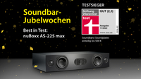 2020 durfte Nubert mit der Soundbar nuBox AS-225 den ersten Testerfolg bei Stiftung Warentest feiern. In Ausgabe 08/2022 des „test“-Magazins folgte dieses Jahr ein Doppelsieg, nuPro AS-3500 und nuBoxx AS-425 max belegten Platz eins und zwei in der Kategorie „Soundbars (einteilig)“. Jetzt folgte in Ausgabe 11/2022 ein weiterer Erfolg: Die nuBoxx AS-225 max konnte sich im Vergleichstest unter den einteiligen Soundbars bis 500 Euro durchsetzen. Nubert macht Testsieger – ein echter Grund zu feiern! Deshalb startet Nubert die Soundbar Jubelwochen und lässt bis zum Jahresende alle Käufer an der Freude teilhaben.