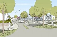 Der Platz am Eingang zum neuen Wohnquartier soll der soziale Dreh- und Angelpunkt der Siedlung werden. Hieran angegliedert sind betreute Seniorenwohnungen, die Kindertagesstätte (Kita), ein offener Nachbarschaftstreff sowie Gewerbeeinheiten für beispielsweise eine Bäckerei mit Bistro und Kiosksortiment. Der mittig gelegene Park wird das verbindende Element zwischen den nördlichen und südlichen Quartieren sein. Dort befindet sich auch ein Spielplatz.
