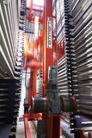 Qualität steht für die Oelschläger-Metalltechnik GmbH an erster Stelle. Jeden Tag fertigt der Büromöbel-Hersteller aus Hoya, Weser eine Vielzahl von unterschiedlichen Produkten mit teils kleinen Losgrößen. Um das hohe Fertigungsniveau auf Dauer zu halten, ist das Unternehmen auf schnelle, flexible und effiziente Produktionsprozesse angewiesen. Gemeinsam mit seinem Partner, der Friedrich Remmert GmbH, stellt OMT daher seine Lagerung und die angeschlossene Fertigung um. Bisher lagern die benötigten Bleche teilweise räumlich getrennt von den Maschinen am Boden oder in Stahlregalen. Um das komplette Material raumoptimiert zu bevorraten und die Produktionsabläufe zu beschleunigen, integriert OMT in den nächsten Monaten nun ein vollautomatisches Remmert-Blechlager. Dieses zeichnet sich durch eine sehr kompakte Bauweise aus: Auf gerade einmal 500 m² kann OMT bis zu 2.300 t Blech bevorraten. Der Fertigungsbetrieb profitiert somit nicht nur von einer Platzersparnis von rund 75 Prozent, sondern steigert auch seine Lagerkapazität erheblich. Um die Bearbeitungsmaschinen von OMT trotz des enormen Lagervolumens optimal zu versorgen, erarbeitete Remmert ein individuelles Lagerkonzept. Dabei stehen die Regaltürme nicht wie üblich parallel zu den Maschinen, sondern um 90 Grad versetzt. Die Versorgung der aktuell fünf angeschlossenen Trumpf-Laseranlagen erfolgt über fünf Auslagerungsstationen. Darüber hinaus verfügt das Lager über eine Einlagerungsstation sowie über drei weitere Auslagerungsstationen, die den Ausbau der Fertigung zu einem späteren Zeitpunkt ermöglichen. Außerdem installiert Remmert an jeder Auslagerungsstation eine Spreizmagnetanlage. Durch die magnetische Kraft des Blechverteilers stoßen sich die Platinen voneinander ab und können so besser vom Stapel abgehoben werden. Anschließend werden sie über eine Handlinghilfe automatisch den Lasern zugeführt.