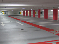 Nach der Sanierung mit dem Abdichtungssystem Triflex ProPark bietet die Tiefgarage Karlsbau am Rande der Freiburger Altstadt ihren Besuchern eine bessere Orientierung, höhere Verkehrssicherheit und ein attraktiveres Erscheinungsbild. Zu den ca. 670 innenstadtnahen Parkplätzen auf drei Ebenen gehören auch Frauenparkplätze sowie vergrößerte Stellplätze für Behinderte. Während das untere Zwischendeck in einem warmen Rotton gestaltet ist, erstrahlt die darüber liegende Ebene in freundlichem Grün. Maßgeblich für die Instandsetzungsarbeiten des 17.000 Quadratmeter großen, stark frequentierten Parkhauses war eine wirtschaftliche und dauerhafte Lösung ebenso wie die Minimierung von Sperrzeiten, Staub- und Lärmemissionen. Nach gemeinsamer Abstimmung zwischen dem Institut für Baustoffe und Sanierungsplanung Freiburg, dem ausführenden Unternehmen R.S.I. Revetements de Sols Industriels aus Frankreich und Triflex, dem Spezialisten für Flüssigkunststoff, konnte dem Betreiber ein Sanierungskonzept vorgestellt werden, das sämtliche Anforderungen erfüllt und die Tiefgarage funktional sowie optisch aufwertet.