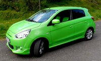 Foto: Der Space Star von Mitsubishi ganz in Grün, hier in der Version „Shine+“, sieht, jugendlich-frisch aus. (Foto: presseweller)