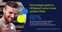 65 % der Befragten geben in der Studie an, derzeit ihre Budgets im Personalbereich für Künstliche Intelligenz (KI), maschinelles Lernen und Automatisierung zu erhöhen. Dies ist ein Anstieg um 10 Prozentpunkte seit 2023. Ein wesentlicher Aspekt von KI in diesem Zusammenhang ist nach Auskunft der Befragten die Fähigkeit, prädiktive Analysen über unternehmensinterne Personalkapazitäten- und Bedarfe zu treffen. Zwei Drittel (66 %) der Personalverantwortlichen investieren in Technologien zur KI-Suche und -Matching für das eigene Personalmanagement, ein Anstieg um 14 % gegenüber dem Vorjahr.