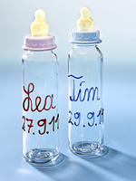 Ein ganz persönliches Geschenk und eine bleibende Erinnerung. Denn diese Babyflaschen behält man ein ganzes Leben lang – so wie die ersten Kinderschuhe, den ersten ausgefallenen Milchzahn oder die erste abgeschnittene Locke.