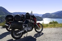 Am Samstag nach dem Frühstück kamen dann alle Teilnehmer erstmals zusammen und trafen auf eine herzliche Gastgeberin und einen charismatischen Tourguide. Gisela Renner, Verkaufs- und Marketingleiterin im Hotel St. Georg und selbst leidenschaftliche Motorradfahrerin, und Andreas Wiesenzarter aus dem Hause Motorradsport Holzleitner führten gemeinsam durch eine kurze Vorstellung und Begrüßung. Die Spannung auf die Testmaschinen und die den Pressevertretern noch unbekannte Tour war groß und so ging es schnell los auf die ca. 180 Kilometer lange Tour. Bei 23 Grad Celsius und strahlend blauem Himmel mit Sonnenschein starteten die Herren in Richtung Österreich. Man beachte, dass nur ein paar Tage vorher das Wochenende wegen Hochwasser zu platzen drohte. Über die langgezogene Gerade am Sudelfeld nahe dem Kesselberg, vorbei am legendären Café Kotz, wo sich an starken Tagen mehr als 500 Biker treffen, führte der Weg die Truppe für eine Fotosession in eine Seitenstraße mit einem einmaligen Blick auf die Wasserfälle am Tatzelwurm. Weiter ging es über die österreichische Grenze bis hin zum Thiersee wo der Gasthof mit Blick auf das gleichnamige Gewässer zur Einkehr verführte. Durch das Inntal entlang der Prien von Tirol ging es dann zurück nach Bayern. Einen Abstecher an den Chiemsee machte dann doch noch das Hochwasser zunichte, doch Tourguide Andreas Wiesenzarter hatte eine sensationelle Alternative. Über eine kurvenreiche Strecke mit etlichen Steigungen brachte er die Mannschaft zu einem wunderschönen Aussichtspunkt an einer kleinen, versteckten Landkapelle. Die bayerischen Alpen im Rücken öffnete sich ein Fernblick bis nach München der selbst den robusten Bikern das Herz für die wunderschöne Landschaft und Natur der Region öffnete. Zurück im Hotel erwartete die Teilnehmer nach Zeit zur freien Verfügung und der Möglichkeit die Tour noch einmal Revue passieren zu lassen ein gemeinsames Abendessen und der Ausklang in der Hotelbar.