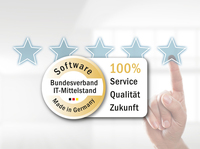 „Software Made in Germany“ ist ein Gütesiegel des Bundesverbands IT-Mittelstand (BITMi e.V.) Diese Initiative steht unter der Schirmherrschaft des Bundesministeriums für Wirtschaft und Energie. Der BITMi e.V. ist die Vertretung des IT-Mittelstands in Deutschland und der IT-Fachverband, die durch renommierte Experten im Beirat unterstützt werden. Im deutschen Mittelstand eingesetzte Branchensoftware wird größtenteils von deutschen Anbietern entwickelt und vertrieben. Hier zeigt sich, dass Software aus Deutschland durch ihre Praxistauglichkeit, überragende Qualität, hohe Investitionssicherheit sowie ihren deutschsprachigen Service überzeugt. Im internationalen Wettbewerb steht „Made in Germany“ grundsätzlich als Synonym für höchste Qualität und hohe Kundenzufriedenheit.