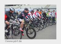 Wir sind alle mit demselben Rad gefahren und haben durch den ständigen Austausch von Akku, Licht und Sattelstütze sicher eine ganze Runde verloren. Aber ich sehe, dass ich noch eine Runde herausholen könnte und gebe alles. Der Motor hat ab der Hedwigshöhe kaum noch etwas zu tun, denn ich trete hart in die Pedale. Unerbittlich läuft die Uhr. Als es vom Hohenrain auf die Zielgerade geht, schlängle ich mich in hohem Tempo durch Fahrermassen, die gemütlich Richtung Ziel rollen. Aber der Streckenwart schwenkt die Fahne, es ist 12:46 Uhr. Direkt nach Überqueren der Ziellinie bremse ich, fahre an den Rand, klicke aus den Pedalen aus – und sämtliches Blut sackt aus meinem Kopf. Es dauert ein paar Minuten, bis es mir wieder einigermaßen gut geht.