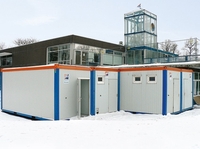 Wolfenbüttel, 29. Januar 2013 – Ob Büro, Küche oder Erste-Hilfe-Raum: Speziell konzipierte Container-Anlagen von HKL erfüllen beim Neubau des Allwetter- und Freibades Okeraue im niedersächsischen Wolfenbüttel viele Zwecke. Seit 2012 sind die Raumsysteme für die örtlichen Stadtbetriebe auf dem Stadtbad-Gelände im Einsatz. Eine fünf-modulige, 75 Quadratmeter große Container-Anlage, die in zwei Bereiche aufgeteilt ist, dient der Bauleitung der unterschiedlichen Gewerke als Büro. Eine vier-modulige Anlage mit insgesamt 60 Quadratmetern dient als Besprechungsraum. Drei Sanitär-Container wurden separat aufgestellt, um den am Bau Beteiligten bestmöglichen Zugang zu gewähren. Für Noteinsätze steht ein Erste-Hilfe-Container bereit. Ein weiterer Container dient als Küchenabteilung. Zusätzlich wurden eine 30 Quadratmeter große Container-Anlage, vier einzelne Unterkunft-Container sowie zwei Material-Container aufgestellt.