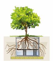 Mit blau-grün-grauer Infrastruktur soll in Städten die natürliche Wasserhaushaltsbilanz wiederhergestellt werden: Regenwasser soll verdunsten, versickern und nur dann abgeleitet werden, wenn es keine anderen Möglichkeiten gibt. Bäume sind ein zentrales Mittel gegen die Aufheizung der Innenstädte, weil sie bei hohen Umgebungstemperaturen sehr viel Wasser verdunsten und so die Temperatur senken, aber auch die sie umgebenden Flächen beschatten. Regenwasser, das vor Ort verdunstet, versickert oder gesammelt wird, erhöht zugleich die Sicherheit vor einem Rückstau aus dem Kanal. Den ViaTree-Grundkörper gibt es mit drei verschiedenen Durchmessern und optional mit Abdeckplatte zum Einbau unter Verkehrswegen. Kapillarsäulen verbessern den Zugang des Wassers zu den Baumwurzeln und schützen vor dauerhafter Vernässung des Wurzelraums. Zusammen mit Bodenmulden, Tiefbeet-Bodenfiltern, Speicherbecken oder klassischen Rigolen können so Grundstücke, Quartiere oder Straßenzüge klimagerecht entwässert werden.