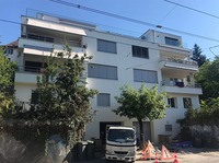 Bei diesem MFH in Zürich führten wir eine Fassadensanierung mit WDVS Mineralwolle W/mk 0.034, 40mm bis 200mm, Mittelschichtsystem 6-8mm und einer Deckbeschichtung Silicon Vollabrieb 2mm, naturweiss, durch. Zusätzlich wurde eine Aufstockung des Attikageschosses aus Holzfaserplatten realisiert.