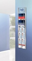 Die repräsentative Prospektwand INFO WALL aus gebürstetem Edelstahl besitzt 7 Fächer und ist mit allen gängigen Prospektformaten (DIN A4, DIN A5 und DIN lang) bestückbar. Die Prospekte werden frontseitig durch Acrylglasscheiben fixiert.