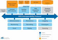 Connext DDS entspricht dem Data Distribution Service (DDS) Standard der Object Management Group (OMG) für Echtzeitanwendungen. Er unterstützt sowohl das DDS-API (Application Programming Interface) als auch das Netzwerk-Interoperabilitäts-Protokoll (DDSI-RTPS). Als einziger speziell für die Anforderungen zeitkritischer Systeme ausgelegter Messaging-Standard kann DDS mehr als das 50-fache der Leistung von IT-Standards wie JMS, MQTT, AMQP, XMPP und Web Services erzielen.