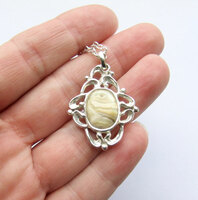 Tatsächlich können Zähne aber so beschliffen werden, dass sie zu neutralen, oft wunderschön gemaserten Schmucksteinen verwandelt werden mit denen sich ebenso wunderschöne Schmuckstücke anfertigen lassen.