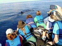 Täglich waren Teams sechs Stunden auf dem Ozean in einem Schnellboot unterwegs um die Delfine und Wale zu erforschen. Unter Anleitung von Edler, seit 28 Jahren mit Delfinen in der täglichen Arbeit vertraut, nahmen die Jungforscher Töne und Stimmen unter Wasser auf, fanden täglich bis zu sechs Spezies und hielten per GPS die Fundorte auf Kartenmaterial fest. Die gefundenen Tiere wurden fotografiert und katalogisiert. Spannend war die Ergründung des Verhaltens auf den Menschen bei dem Schwimmen mit den wilden Delfinen – unvergessliche Erlebnisse für die Jungforscher.