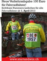 So wird am 1.April 2013 eine neue Abgabe für Fahrradfahrer durch ein neues Werbekonzept, die Nummerierung der Radfahrer, Kosten neutral umgesetzt.