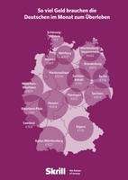 Die erhobenen Daten sind Teil der Studie „The Future of Money“ des Online-Bezahldienstes Skrill. Sie erfasst, was Deutsche aktuell über Bargeld und andere Zahlarten denken und wie sie sich die Zukunft des Geldes vorstellen. Im Video unter http://bit.ly/ScMeFd erzählen Deutsche unter anderem, wie viel Geld sie zum Leben mindestens brauchen und was Luxus für sie bedeutet.