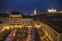 Die malerische Altstadt der slowakischen Hauptstadt Bratislava erstrahlt von Ende November bis einen Tag vor Heiligabend in vorweihnachtlichem Glanz und präsentiert sich von ihrer schönsten Seite. Mit dem Entzünden der Kerzen an den großen Weihnachtsbäumen auf dem Hauptplatz und dem Hviezdoslav-Platz haben die Einwohner jetzt den Startschuss gegeben für die beiden stimmungsvollen Weihnachtsmärkte, die dort stattfinden. Mit tausenden von Wunderkerzen wurde zudem zum Auftakt die ganze Altstadt in ein Funkenmeer verwandelt.