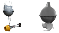 SLTT (Small Lens-type Tidal Turbines) – Boje und Stromerzeugung sind getrennt. Ein Diffusor wurde um die Turbine herum eingebaut. Neben dem Schutz der Turbine bewirkt der Diffusor, dass der Wasserzulauf erhöht wird, was zu einer verbesserten Stromerzeugung führt.