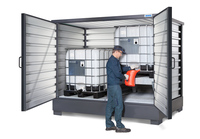 Das platzsparende Lagern größerer Gebinde wird für produzierende Betriebe zunehmend wichtiger. In vielen Fällen ist es wirtschaftlicher, Gefahrstoffe in großen Mengen vorzuhalten. Mit einer Lagerkapazität von bis zu 2 IBC oder 8 Fässern à 200 Liter bieten die neuentwickelten Gefahrstoffregallager SolidMaxx von DENIOS optimale Bedingungen.
