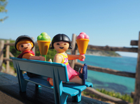 Die komplett eingerichtete Ferienvilla bietet viel Platz für die PLAYMOBIL-Familie, die mit dem geräumigen PKW anreist. Der Balkon des mediterranen Urlaubsdomizils eröffnet einen wunderbaren Ausblick bis zum Meer. Die Kinder freuen sich schon auf die Erfrischung im Swimmingpool, denn hier sorgen die Spritzkrake und Duschpumpe für jede Menge Spaß. Heute steht ein Ausflug mit dem Tretboot auf dem Programm, dann toben sich die Kids auf dem Spielplatz mit Rutsche, Kletterwand und Schaukel so richtig aus. Natürlich darf auch ein entspannter Strandbesuch für die PLAYMOBIL-Urlauber nicht fehlen. Nach einem so ereignisreichen Tag hat jeder ein Eis vom Verkäufer auf dem Fahrrad verdient.
