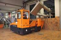 In der Koblenzer Containerhalle nimmt der Mulden-Transporter mit einer Tragfähigkeit von 14 Tonnen die Absetzmulden mit einer Größe von 3.400 x 1.600 x 1.450 mm auf und fährt sie in einer Hubhöhe von 300 mm an ihren Bestimmungsort. Die niedrige Bau- und Hubhöhe des Sondergeräts war ein wichtiges Kriterium für die Betreiber des Klärwerks, weil dadurch ein kostenintensiver Umbau der Kettenförderanlage vermieden werden konnte. Ein weiterer Vorteil der Lösung ist ihr 3-Rad-Fahrwerk, das für mehr Stabilität beim Transport sorgt. Selbst bei schlechten Untergrundverhältnissen behält das Fahrzeug so Bodenkontakt und bringt die Mulden sicher ans Ziel. Aufgrund der gewählten Fahrwerkskonstruktion muss unter der Fahrerkabine kein zusätzlicher Antrieb platziert werden, wodurch die Kabinenhöhe niedrig ausgeführt werden konnte. Zudem ist der Fahrersitz um 90 Grad zur Last angeordnet. Dadurch befindet sich die Kabine in einer optimalen Position mit niedriger Einstiegshöhe und guter Rundumsicht während der Fahrt und bei der Lastaufnahme. Für den Einsatz auf Beton, Pflastersteinen und Asphalt verfügt das Fahrzeug zudem über eine PU-Soft-Bereifung. In der Containerhalle vereinfacht diese auch das Überqueren von Schwerlastgittern und schont dabei zusammen mit der schwingungsgedämpften Kabine den Rücken des Fahrers.