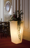 Trevia von Degardo ist in vier verschiedenen Größen von 90 bis 150 cm Höhe erhältlich und kinderleicht zu bepflanzen. Die Oberfläche der Vase erstrahlt in zeitlosem Weiß und unterstützt so optimal die Leuchtkraft der Vase, die mit zwei Energiesparlampen ausgestattet ist. Diese können farblich mühelos auf das ausgewählte Pflanz-Arrangement abgestimmt werden. Außer der beleuchteten Variante stehen die Pflanzgefäße auch in einer breiten Farbpalette zur Verfügung.