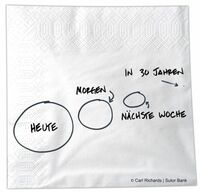 Carl Richards rät daher, sich der Wirklichkeit zu stellen und möglichst früh mit der finanziellen Absicherung zu beginnen. Dann nämlich muss man sich nicht im Alter von 60 Jahren dafür schelten, als 30-Jähriger nichts von dem „blöden Erwachsenenkram“ getan zu haben – wie etwa sich über seine finanziellen Ziele Klarheit zu verschaffen.