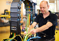 Bei der Belegung der Ketten mit Energiekabeln aus der W-TEC Serie von LQ verwenden die Montagemitarbeiter viel Sorgfalt auf die Verlegung der einzelnen Kabel in der Kette. Letztlich wird sie fachgerechte zugentlastet und auf optimale Funktionalität geprüft. „Durch den Erwerb fertiger Energieführungsketten reduzieren sich die Montagedurchlaufzeiten von Tagen auf Stunden und verschaffen Flexibilität bei Auftragsschwankungen“, betont er. Wartungs-, Servicearbeiten, Reparaturen und Ersatzteilbeschaffungen rund um die gelieferten modularen Komplettsysteme übernehmen geschulte LQ-Mitarbeiter. Auch Umbauten und Inbetriebnahmen erfolgen dank eines 24-Stunden Bereitschafts-Services weltweit auf Anfrage. Die passgenauen Installationssysteme werden sogar just in sequence bereitgestellt.