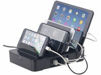 Strom-Tankstelle für alle Smartphones und Tablets revolt 6-fach-Ladestation mit 5-Port-USB-Netzteil, Smart Power, 40 Watt, www.pearl.deBis zu fünf Geräte gleichzeitig laden:…
