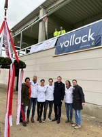 Strahlende Gesichter beim Richtfest der Bäckerei Pass (Bildquelle: Vollack)Düsseldorf, 2. Februar 2023. Das neue energieeffiziente Produktionsgebäude der Bäckerei Pass nimmt…