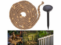 Schöne Leuchtakzente an Zaun, Geländer, Gartenbank & Co. setzen Lunartec Solar-Seil-Lichterkette aus Naturfasern mit 60 eingearbeiteten, www.pearl.de- Lichtseil aus Naturfasern…