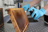 Varroa-Schutz durch Besprühen einer Bienenwabe mit PheromonenTLB vermarktet für Universität Hohenheim ersten biologischen Schutz vor Varroamilben. Gesunder Honig ohne Pestizidrückstände…