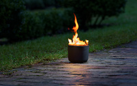 Flackernde Flammen tauchen Garten und Terrasse in ein warmes LichtDer lebendige Feuerschein, die wohltuende Wärme und die hell leuchtenden Flammen…