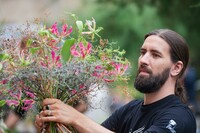 – Foto: Christopher Ernst bei der Deutschen Meisterschaft der Floristen 2022 –Der Brautstrauß seiner Frau bestand aus Nelken. Eine Blume,…