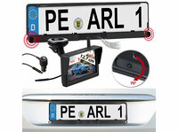 Nach hinten alles im Blick: dank 170°-Bildwinkel und extra-großem Display Lescars Funk-HD-Rückfahrkamera PA-570 in Nummernschildhalter- HD-Kamera mit riesigem 170°-Bildwinkel, neigbar…