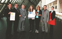Alice Bedow und Henriette Selter freuen sich über den Gewinn. v.l.n.r.: Martin Hädrich (HNBK), Prof.Essen, 11.11.2014 - Gestern wurde im…