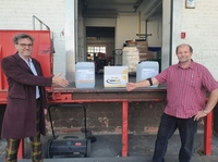 neoLab Migge spendet Atemschutzmasken und Desinfektionsmittel Rainer Kern (l.), Rotaryclub Heidelberg-Mannheim und Hubert Mitsch (r.) von den Tafeln Mannheim (Bildquelle:…