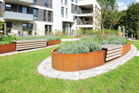 Pflanzsysteme aus Cortenstahl der Firma Richard Brink zieren Außenanlagen Pflanzsysteme aus Cortenstahl wie die Hochbeete der Firma Richard Brink setzen…