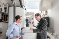 Öl- oder Gaskessel jetzt durch Wärmepumpe ersetzen Haustechnik-Experte Henning Schulz (rechts) von Stiebel Eltron.Hausbesitzer, die vor der Entscheidung für ein…