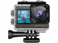 Dank 2 Displays hat man immer volle Kontrolle über die Action-Aufnahmen Somikon 6K-Actioncam DV-950.WiFi mit 2 Farbdisplays, WLAN- Ultra-scharfe 6K-Action-Videos…