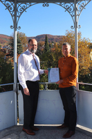 Eningen / Reutlingen. Die TOP Sozial- Charta zertifiziert neuen Partner. Holger Ehnes, TOP Sozial freut sich mit Gerardus van Rossenberg…