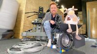 Meilenstein für regionale Digital-Werbung Geschäftsführer Kay Zimmer mit "Trude Kuh" auf der Baustelle im neuen TV-Studio.Saterland (31.03.2025) - Die Bauarbeiten…