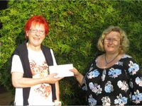 Kassiererin Christa Sauer (links im Bild) erhält die Spende von Heilpraktikerin Denise Sonja Engels"Die Haut ist der Spiegel der Seele"…