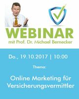 Köln, 04.10.2017: versicherungsvermittlercheck.de präsentiert das Live-Webinar "Online Marketing für Versicherungsvermittler" mit Prof. Dr. Michael Bernecker als Referenten. Am 19. Oktober…