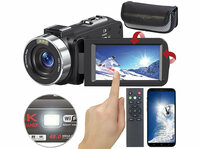 Den Camcorder auch bequem per Smartphone und App steuern Somikon 8K-UHD-WLAN-Camcorder DV-910.uhd, IPS-Touchdisplay, 48 MP, 18-facher Zoom, App, www.pearl.de- Filmt…