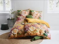 Romantik und Expressivität zaubert die neue Bio Mako-Satin Wendebettwäsche mit prachtvollen Blumen in den Trendfarben Jade, Rosa, Grün und Gelb in das Schlafzimmer. Das schimmernde Gewebe aus feinster mercerisierter kbA-Baumwolle (kontrolliert biologischer Anbau) ist nach GOTS zertifiziert, temperaturausgleichend und atmungsaktiv und sorgt für ein angenehmes Schlafklima. Der hochwertige Digitaldruck verleiht den Farben besondere Brillanz und erhält sie dauerhaft schön.