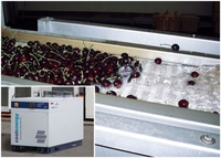 CoolEnergy kühlt die empfindlichen Früchte zunächst mit einem kleinen 6,6-Kilowatt-Kaltwassersatz vor. Anschließend sorgt ein 10-Kilowatt-Gerät für die notwendige konstante Wassertemperatur von exakt vier Grad. Nach der Trennung erfolgt die vollautomatische Sortierung mit einer photooptischen Vermessung der einzelnen Kirschen.
