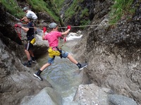 Bei einem Kurs in der Kletterarena Ottenalm erhalten Kletteraffen von zehn bis 17 Jahren zunächst eine theoretische Einführung über Kletteregeln und das Verhalten an der Wand. Danach geht es mit Seil und Sicherungsgeräten an die Wand, wo das Rüstzeug zu selbstständigem Klettern vermittelt wird. Ebenfalls mit Helm und Gurt ausgestattet, sind die Kinder beim Schluchtenklettern. Hier liegt der Reiz allerdings nicht in der Höhe, sondern darin, eine verborgene Schlucht mit kleinen Wasserfällen, Steinen und Sandbänke zu erkunden. Wasserratten werden beim Rafting-Abenteuer auf ihre Kosten kommen. Von der Tiroler Ache aus geht es hinein in die Entenlochklamm zur Schlauchbootgaudi mit Wasserschlacht.