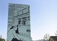 Dieses Phänomen können wir auch auf dem LUWA-Areal beobachten, denn die Malerei bildet eine massive Maschine des Herstellers „Cincinnati“ und zwei Arbeiter ab. Dies also der klare Verweis auf die Verarbeitung von Metallen am ehemaligen Industriestandort. Auch wenn die visuell fesselndste Phase, die Realisierung der Malerei auf der Fassade, aktuell bereits ein paar Jahre zurückliegt, so sind das Kunstwerk und das LUWA nach wie vor einen Besuch wert.